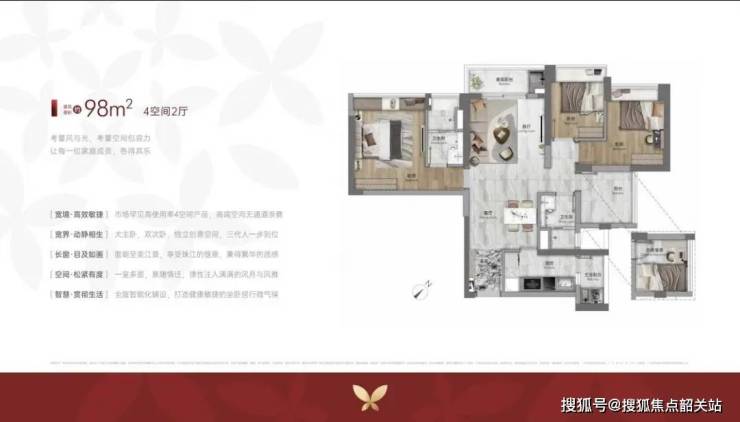 98㎡四空间两厅两卫:功能齐全,适合家庭居住。