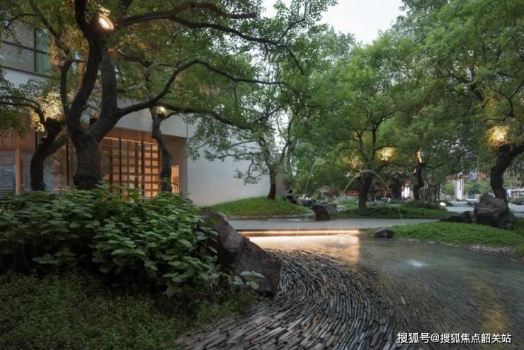 园林整体以岭南名园“可园”为园林造诣,以6棵原生百年古榕为载体,定制“一廊五院”栖居空间,形成约2.7低容积率的生态园林。
