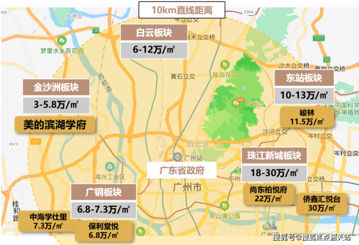 距广州市政府仅约10km直线距离,完完全全的广州核心城区生活圈!同等生活圈范围内的其他置业板块(如白云新城、荔湾广钢等),价格均超7万/㎡+,最高已超30万/㎡!