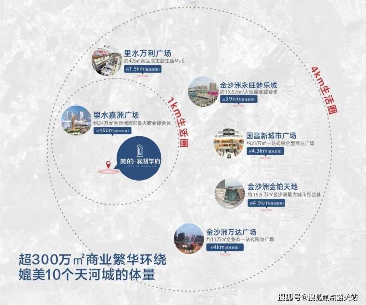 永旺梦乐城、金沙洲万达、金铂天地、永润广场,15分钟车程内可以享受体量约超过10个天河城的商业配套。