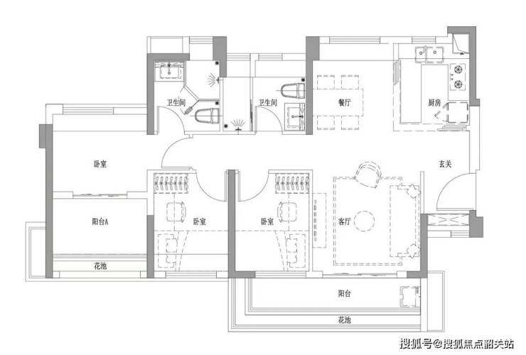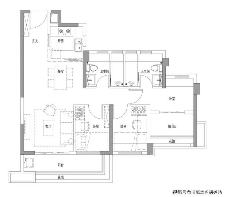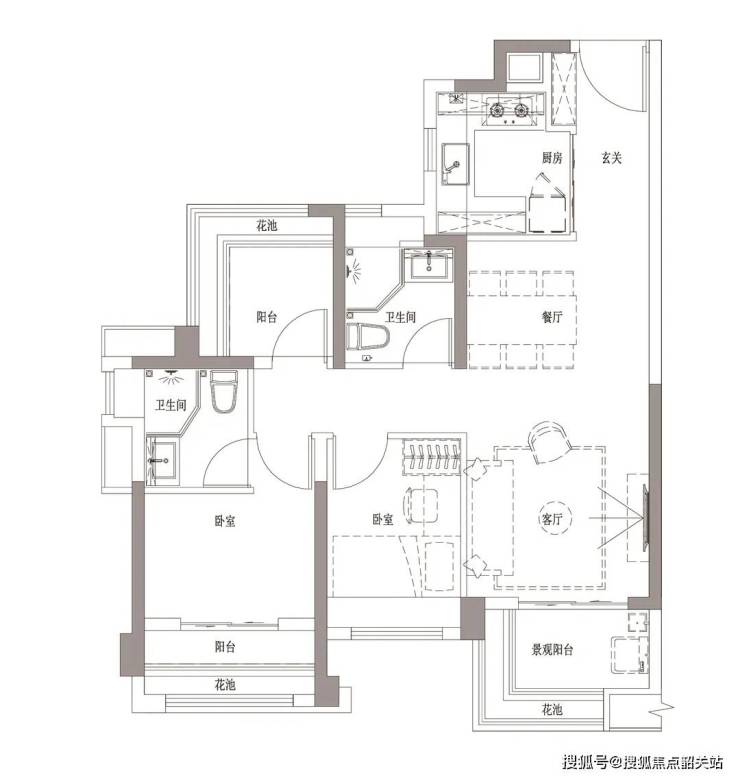 88㎡ 3室2厅2卫:卧室和客厅均朝南,视野开阔,主套南北通透,空气清新。