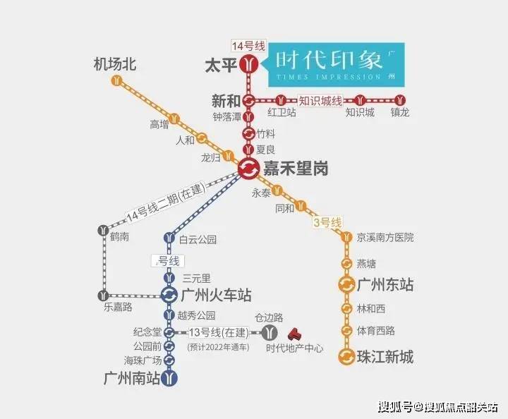 时代著作位于白云区、黄埔区与从化区交界处14号线太平地铁口,享受4地铁1城轨环绕优势,经过新和一站可到嘉禾望岗,无缝接驳地铁14号线、14号线支线(中新知识城支线)、地铁2号线、地铁3号线。