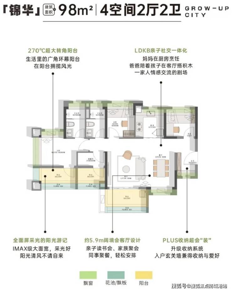 主力户型覆盖76㎡至125㎡的全南向三至四房设计