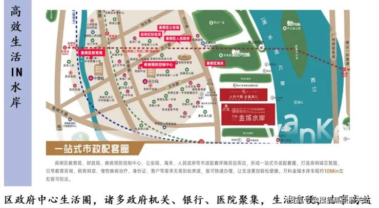 在西江沿岸区域,高明政府计划花费千亿打造城市门户,打造集“生态保育、产业创新、展览交流、商务商业、文化体验、娱乐休闲、旅游观光、交通换乘、智慧社区”等多功能为一体的“西江滨水活力带”。