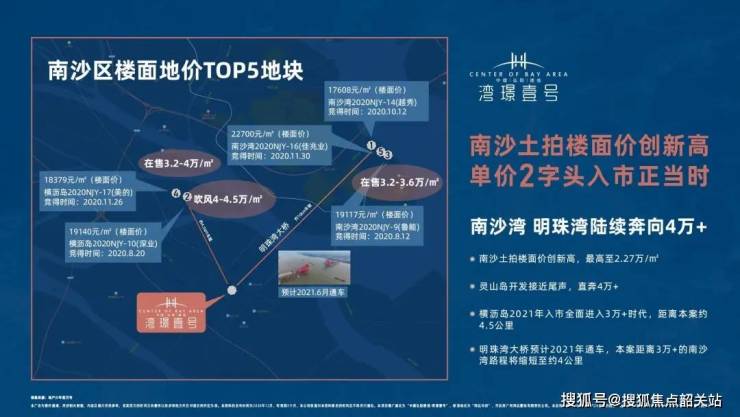 • 明珠湾大桥:预计2021年6月通车,项目西北侧南万大道过桥即达南沙湾(zui高楼面地价22700元/㎡,吹风直奔4万+)