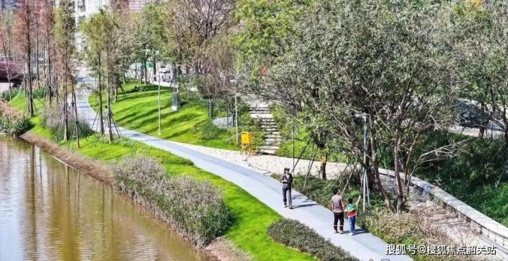 小区出门15米就是约4.5万平的滨水公园,是万科融合1700多年花地文化故事,打造瑧园业主归家必经的第一道动线。