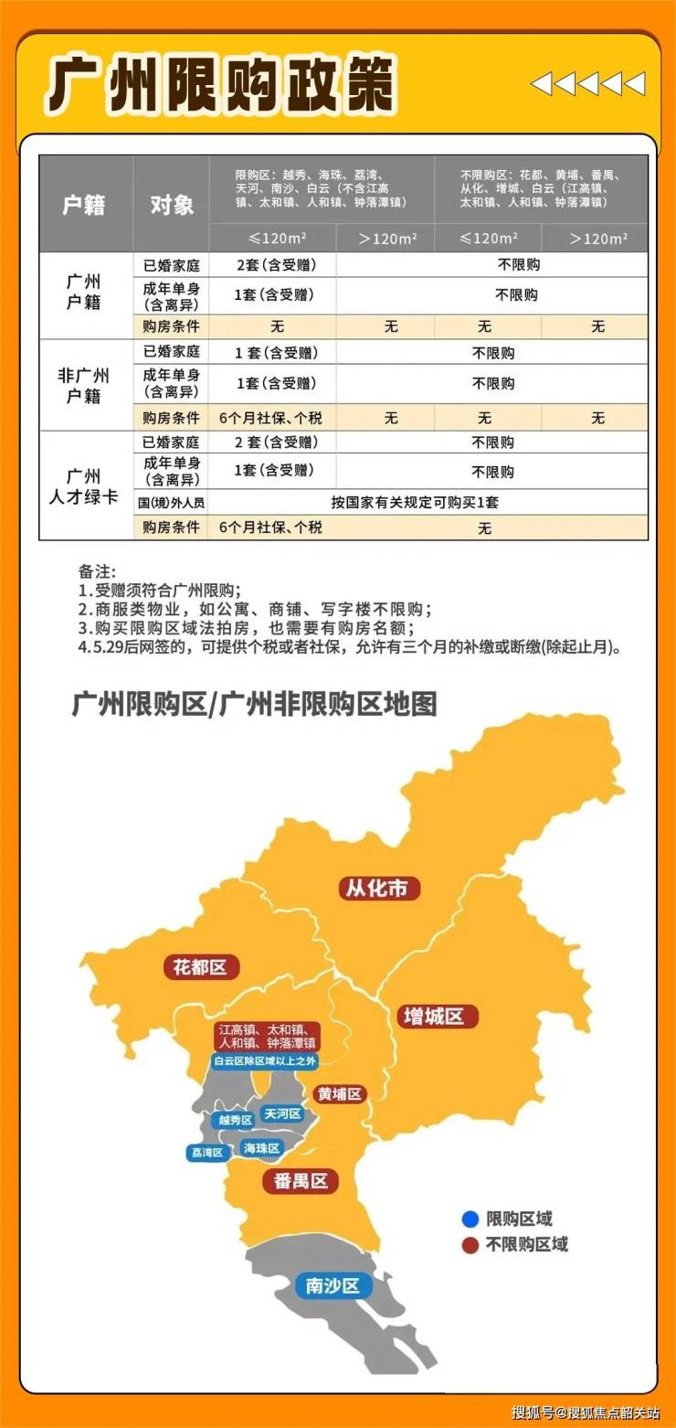 1. 全广州,建面120㎡以上住房(新房+二手),都不限购!名下已有的120㎡以上住房,也不计入限购套数。