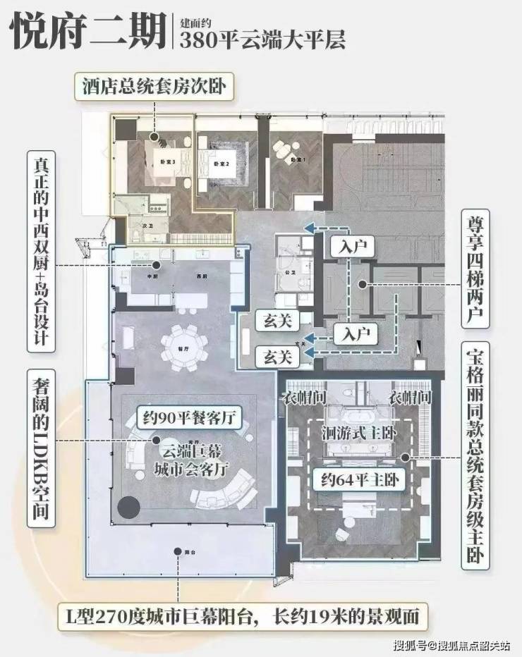 东莞悦府作为华润置地悦系3.0的首发之作,择址于东莞CBD之核,以建面约220-380㎡天幕奢宅,为东莞呈现更具国际化的高端生活方式。