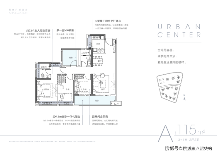 户型方面,项目首推的是建面约90-133㎡三到四房,利用了风车型设计,做到了户户朝南。