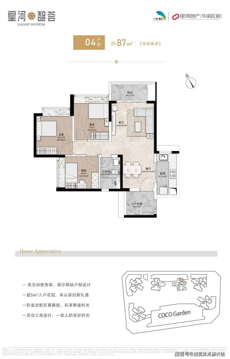 商业配套方面,项目自带的COCO Garden将成为南沙地区的重要商业综合体,包含了各类零售店、餐饮、娱乐等商业设施,满足居民日常生活的所有需求。