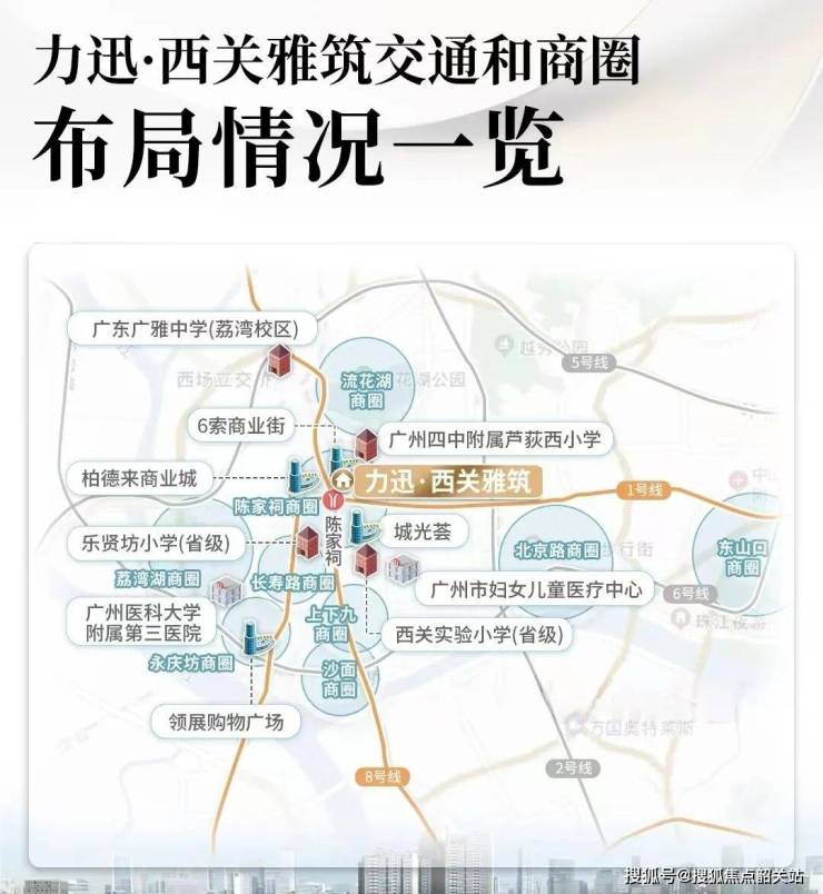 西关雅筑地理位置优越,紧邻地铁1号线和8号线交汇的陈家祠站,步行即可到达。从这里出发,可以轻松抵达越秀环市东、海珠琶洲、沙园等商圈,且无需换乘。此外,项目周边还有多条公交线路经过,出行极为方便。