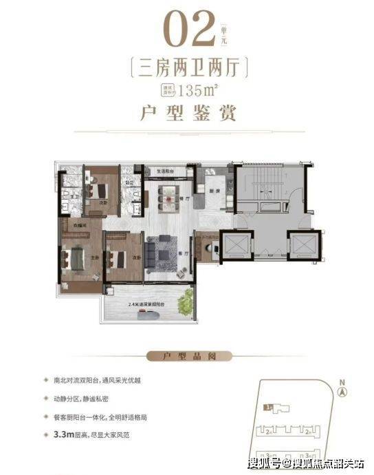 户型与空间尺度:小高层产品全南向布局,南北通透,LDK一体化公区尺度开阔;130㎡三房功能紧凑高效,224㎡以上四房则强调主卧套房、双卫配置与景观视野。3.3米层高显著优于市场平均水平,营造轻盈通透的居住感受。叠院产品则提供上下分层、私家庭院等差异化体验,满足多元改善需求。