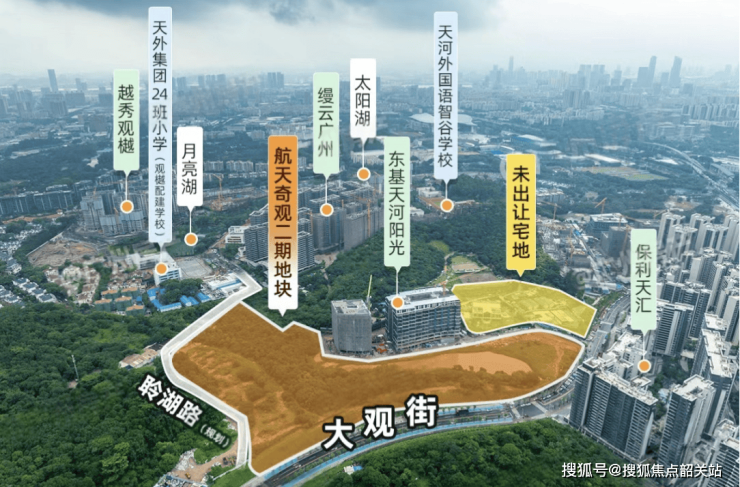 航天奇观二期地块位于天河区国际湖板块,紧邻知名豪宅项目如越秀观樾和缦云,地理位置优越且环境宁静。该区域因靠近国际湖,许多住宅单位可享受湖景视野,提升居住体验。项目距离地铁二十一号线大观路站约一千七百米,虽非步行即达,出行方面需依赖电动车或公交接驳,且高峰时段大观路易堵车,交通便利性相较于核心地铁物业稍显不足,但区域整体配套成熟,生活便利程度仍处于较高水平。未来项目将打通与观樾板块之间的道路,商业和生活配套共享优势明显,形成区域内良好的居住氛围和便利生活圈。