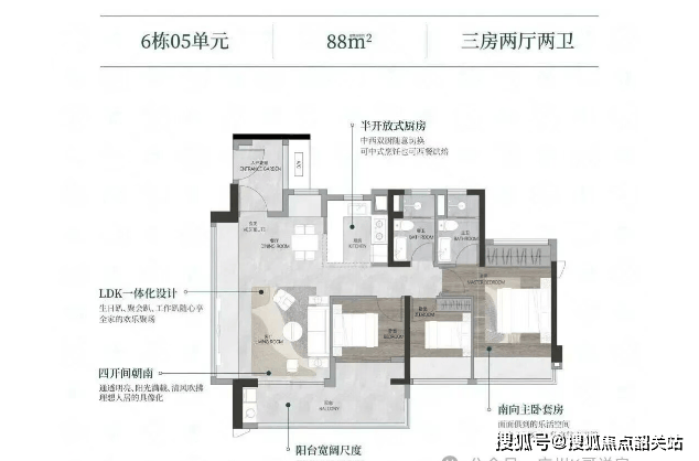 产品力是建鑫·如意芳华最核心的竞争力,其户型设计堪称荔湾新规下的“教科书级”范本。项目主推建面约82至141平方米的全南向三至四房户型,通过创新的空间布局,实现了超100%的使用率。首期推出的建面约88至89平方米的三房户型,拥有约6.2米的超大阳台开间,采光通风极佳,入户花园的设计更是增添了归家的仪式感;建面约106至108平方米的四房户型,阳台开间约6.5米,空间尺度阔绰,功能分区合理,满足了多代同堂家庭的居住需求;而建面约125至141平方米的大户型,阳台开间更是达到了惊人的8.3米,媲美豪宅的景观视野,各个卧室均配备超大飘窗,将阳光与美景毫无保留地引入室内。所有户型均采用全南向布局,确保了全年充足的日照与良好的通风,真正做到了“小面积、大功能、高舒适”,让每一位业主都能享受到越级的居住体验。