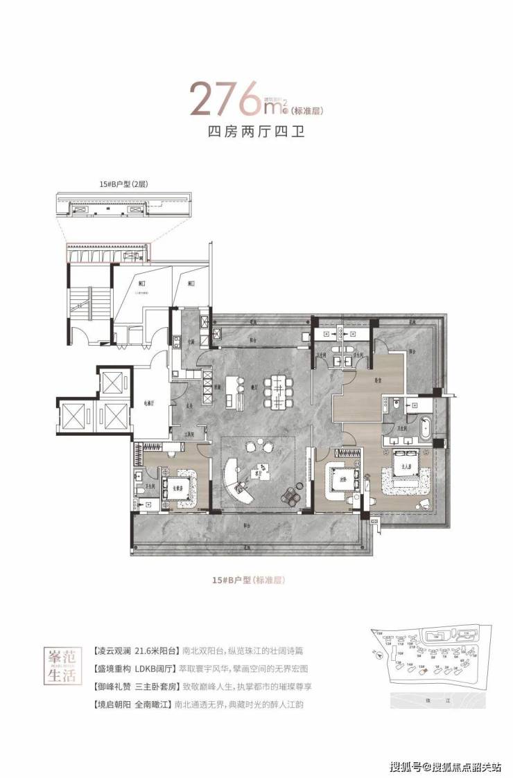214-319㎡一线江景大平层:仅限96席,特色在于尊梯入户、24米长阳台、极致亲江(60m),以及60m极致亲江,全南望江的设计理念。
