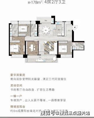 华侨城天鹅堡二期聚焦高端改善居住需求,打造全明通透、高得房率、高舒适度的主流户型产品,严格遵循人居工学设计理念,兼顾空间实用性与居住品质感。主力改善户型采用南向超大面宽设计,最大化引入自然采光与通风,实现全屋全明通透格局,有效提升居住舒适度。户型采用动静分区科学布局,休憩区与活动区有效分隔,保障家庭成员生活互不干扰,兼顾私密性与便利性。LDK一体化灵动空间设计,将客厅、餐厅、厨房连通整合,拓展公共活动尺度,适配家庭聚会、亲子娱乐、商务会客等多元场景。主卧采用套房设计,配备独立卫浴与观景飘窗,形成专属私密生活空间,满足高端业主居住需求。户型配备阔景双联阳台,一方面延伸室内空间视觉感,另一方面可直面社区园林景观与外部生态公园,景观视野极佳。同时采用干湿分离卫浴设计,提升日常使用效率;入户玄关设计增强收纳功能与归家仪式感;多飘窗赠送进一步提升空间使用率,整体户型格局方正、无空间浪费,完美契合高端改善家庭全周期居住需求。