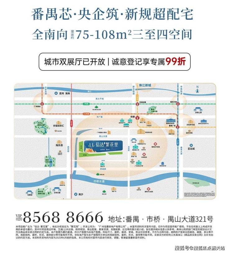 信达・繁花里位于番禺核心板块,凭借便捷的交通网络,实现了与海珠、越秀双主城的高效联动。项目周边拥有完善的交通路网,自驾可快速连接新光快速、华南快速等主干道,30 分钟可达珠江新城、琶洲等核心区域;同时周边分布有多个公交站点,公共交通便捷,构成立体交通体系,畅达全城。
