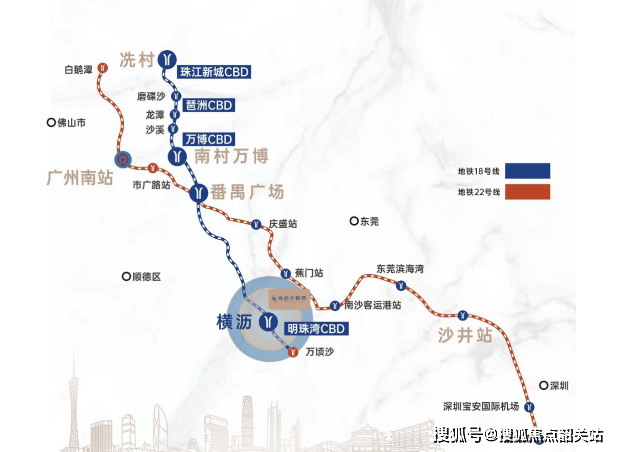 海语天悦湾雄踞横沥国际金融岛的绝对核心,这里是国家定义的“立足湾区、协同港澳、面向世界”的重大战略性平台,也是广州城市“双核”之一。项目地处三大组团交汇的中轴线上,东侧紧邻IFF国际金融论坛永久会址、广州期货交易所等重量级地标,与金融岛芯的繁华景象遥相呼应,复刻了珠江新城的发展模式,是名副其实的核心资产。在交通配套方面,项目堪称“地铁上盖”的典范。距离被誉为“大湾区最快地铁”的18号线横沥站直线距离仅约500米,步行即可轻松抵达。乘坐18号线快线,仅需3站即可直达珠江新城,瞬间串联起琶洲、万博、金融岛四大CBD,通勤效率极高。此外,规划中的15号线、31号线、32号线也将在此交汇,未来更可换乘22号线通达深圳、东莞,南延线直通中山、珠海。这种“四地铁交汇、三站达天河”的顶级交通配置,让海语天悦湾成为了连接湾区城市的枢纽节点,让居者轻松掌控广佛同城乃至大湾区一体化的脉搏,真正实现了“地铁家门口,世界在脚下”。