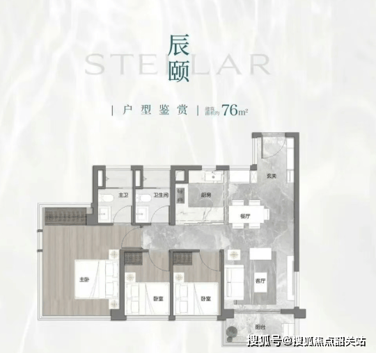 在户型设计上,项目精准切中改善客群痛点。主力产品涵盖建面约75-105㎡的塔楼三至四房,以及约126-128㎡的T2板式四房。其中,板楼采用两梯两户专梯入户设计,户户单边位,打造L型转角空间,最大化南向采光与景观视野。更关键的是,126㎡产品严格控制在140㎡豪宅线以下,使用率预计超100%,让总价千万内的买家也能轻松上车天河核心区低密湖居。
