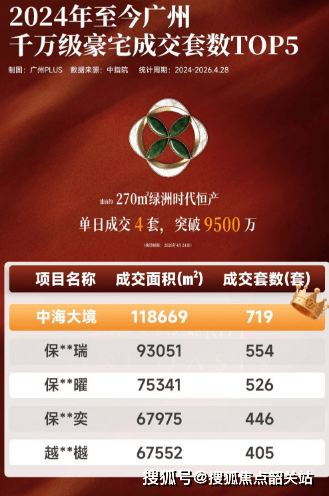 回望近期项目市场表现,热度早已提前蔓延,上周五单日成交四套建面约270㎡超大平层房源,单日成交额突破9500万,四位高净值业主分别来自投资管理、高端装修、互联网科创、外贸实业等核心领域,皆是深耕行业多年的城市中坚力量,以实际置业选择认可中海大境的地段价值与产品实力。紧随其后的周末时段,东区湿地头排143㎡优质户型持续成交,工作日单日再加推三套190㎡改善大平层,紧凑的成交节奏,印证主城稀缺豪宅无需节点加持的硬核吸引力。自2024年开盘至今,中海大境连续两年稳居广州千万级豪宅销售套数、销售面积双榜单前列,中指院截至2026年4月28日的权威统计数据,清晰记录项目长期领跑的行业地位,在改善市场竞争日趋激烈的当下,能够持续稳定保持高热度,背后是地段、生态、配套、产品、服务五大维度的综合实力支撑。