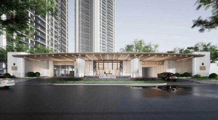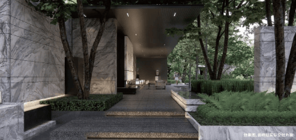 中海大境东区实景园林即将于五一正式开放,现阶段示范区、景观轴线、大堂空间、核心园林节点均已完成实景呈现,遵循完整参观动线,从社区主入口一路深入,全方位感受项目的精工细节与雅奢营造理念,每一处空间设计、建材选用、景观打造,皆彰显顶豪住区的品质格调与匠心考量。社区主入口打造约45米宽白鹭展翅主题奢石门楼,设计灵感对标上海前滩华尔道夫高端酒店,整体造型大气舒展,线条简约高级,甄选木化石石材搭配仿铜不锈钢吊顶,硬质建材质感厚重耐用,兼具美观度与抗风化属性,适配岭南多雨潮湿的气候条件,长久保持建筑立面整洁精致。