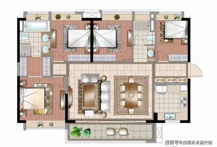 以建面约127㎡四房两厅两卫为例,该户型设计紧凑合理,功能分区明确。客厅与餐厅相连形成开阔的空间,增强了家庭成员之间的互动。主卧设有独立卫生间,并配备了步入式衣柜,为日常生活提供了极大的便利。厨房则采用了U型设计,操作流线顺畅,有效提升了烹饪效率。