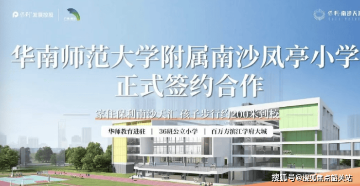 项目自带 2 所幼儿园 + 36 班公立华南师范大学附属南沙凤亭小学(2024 年 9 月已开学,教育局官方公示)+2000㎡少年宫。