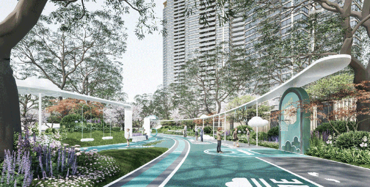 社区内部配备了一座家门口的公园以及七大运动主题大花园,总面积达到约7.2万㎡,这在海珠区内是非常罕见的。除了常见的乒乓球桌、单双杠之外,还有从大球到小球运动全覆盖的设施,为居民提供了一个全方位的休闲健身场所。同时,小区内自带1800㎡风情商业街,进一步丰富了居民的生活方式。