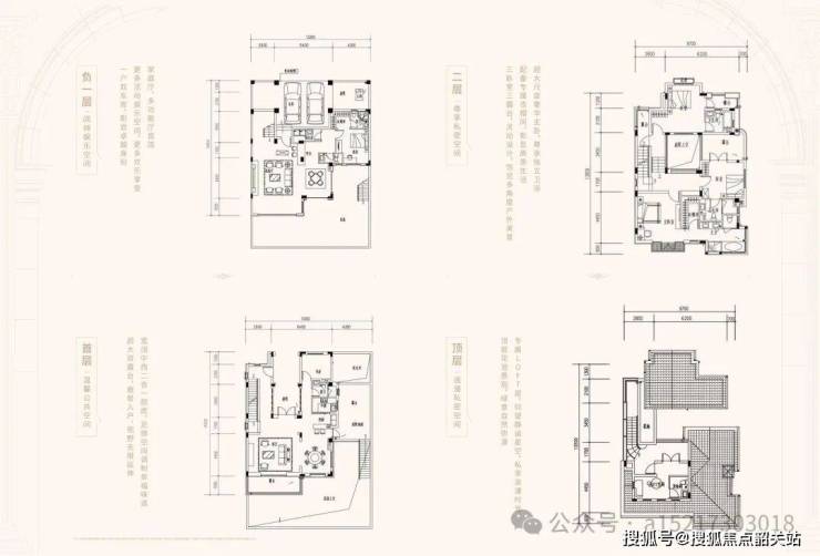 项目所有户型均配置双独立车库,可同时停放两辆家用汽车,充分满足高端家庭的停车需求,同时车库直接入户,实现人车分流,既保障了业主入户的便利性与私密性,也保障了社区内人行空间的安全性与静谧性。户型地下空间配置独立 Loft 区域,可根据业主需求灵活打造为家庭影院、健身空间、酒窖、台球室、收藏室等多元休闲娱乐空间,满足业主的个性化休闲需求。一层设置长辈套房,无需上下楼梯,充分适配老年家庭成员的居住需求;二层、三层设置多间卧室套房,每间卧室均配置独立卫生间与衣帽间,保障每一位家庭成员的居住舒适度;顶层配置独立主人层,打造超大主卧套房,配置独立衣帽间、卫生间、书房与观景露台,为主人打造专属的私密奢华居住空间。