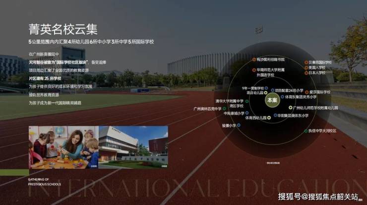 越秀观樾高度重视教育配套建设,项目自配 15 班幼儿园和 24 班小学,其中 24 班小学引进广州天河外国语教育集团合作办学,为业主子女提供优质的教育资源。广州天河外国语学校自 2012 年 4 月创办以来,迅速成长为广州优质教育品牌,同时享有北京大学大学先修课程实施学校、广州市教育工作先进集体等多项称号,教学质量有口皆碑。