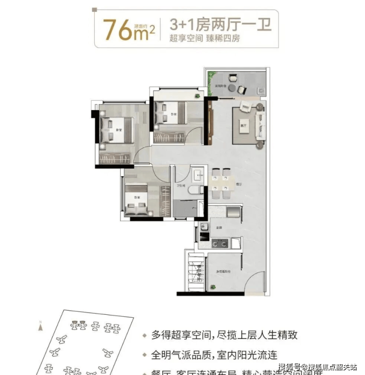 76㎡三房一卫:竟能做出“3+1房”格局(书房可改卧室),适合单身或小两口过渡;