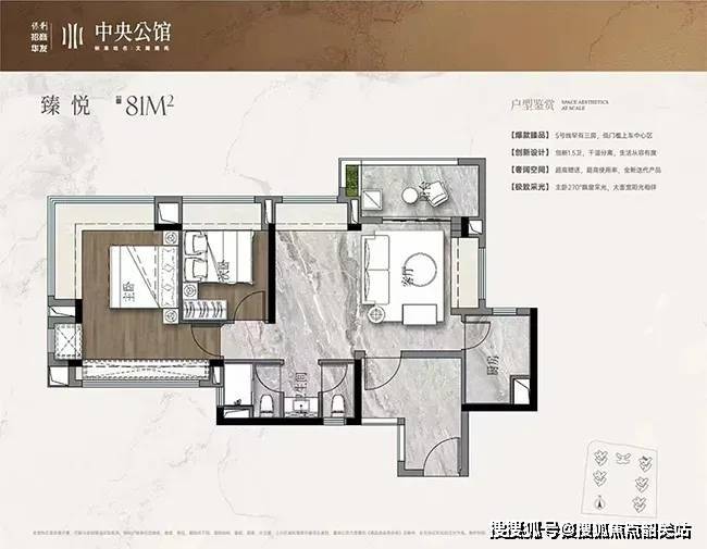 户型创新:81㎡三房做到“主卧套房+双卫”,区域同面积段唯一(据克而瑞2025年户型库)。