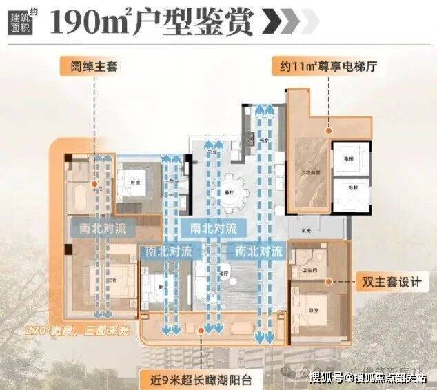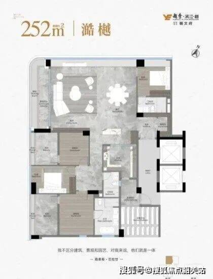 目前越秀观樾主推 126-252㎡的三至五房,还有 210㎡的合墅产品在售,所有户型均为纯板式设计,大部分做到了南北通透,得房率超 85%,部分户型因为赠送飘窗和阳台面积,实用率能达到 110%。