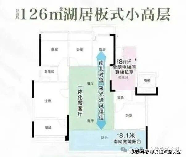 其中 126㎡四房是刚需偏改善的主力户型,2025 年五一期间刚加推,总价约 850 万起,采用三开间朝南设计,LDKB 一体化布局让客餐厨阳台连通,客厅面宽约 4.5 米,主卧带独立卫浴和飘窗,部分楼层能看到湖景,很适合在智谷或珠江新城上班的年轻家庭。