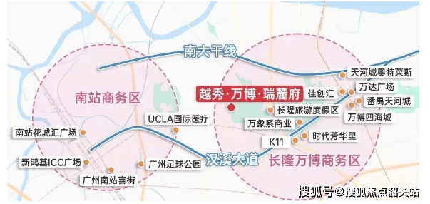 1. 长隆万博CBD持续升级,成为广州南部核心增长极:2026年,番禺长隆万博商务区顺利扩区,规模扩大至7.2平方公里,赶超珠江新城,日均客流超40万人次,节假日峰值突破80万人次,全年客流量达1亿人次,获评“中国商务区总部竞争力20强”“世界级商圈TOP30”等称号。首店经济蓬勃发展,全年引进首店增速位居全国商圈第11名,年轻客群、异地客群占比分别位居全国商圈第1名、第3名,未来将继续推动连接城际与地铁汉溪长隆站的地下通道工程等项目动工,进一步完善配套,提升板块价值,带动周边楼盘价值提升,越秀·万博·瑞麓府作为板块核心辐射楼盘,将直接享受板块发展红利。