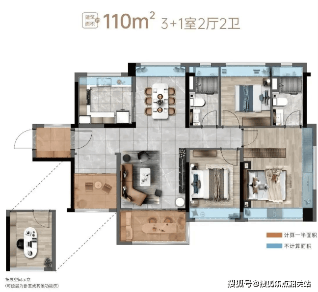 110㎡四房:豪华户型,享受更高质量的生活。