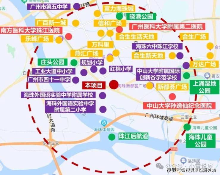 楼盘是属于海珠石溪水厂地块的一部分,位于海珠南石头街道,西临工业大道,南临新滘西路,隔壁不远就是二手盘保利花园。