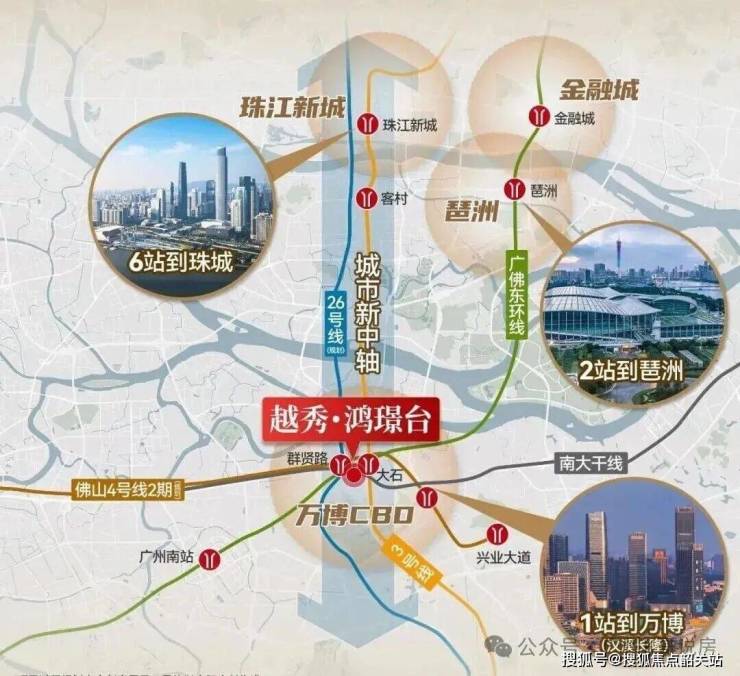 回答:越秀・鸿璟台实现了地铁、城际、快速路的三重交通覆盖,在通勤效率上具备显著优势。首先在地铁通勤方面,项目步行约 700 米即可抵达地铁 3 号线大石站,6 站直达珠江新城,是番禺北部少数可实现地铁半小时直达珠江新城的项目,相较于万博板块内多数项目,到珠江新城的通勤站数更少、耗时更短,早高峰通勤更具优势。