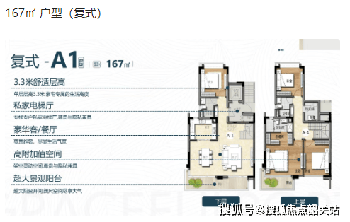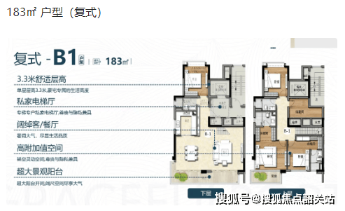 复式户型(164㎡-183㎡):充分满足对空间有更高要求的业主。