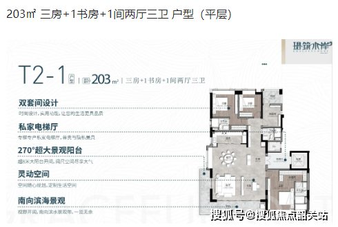 203㎡三房+1书房+1间两厅三卫:高端改善型家庭的理想选择。