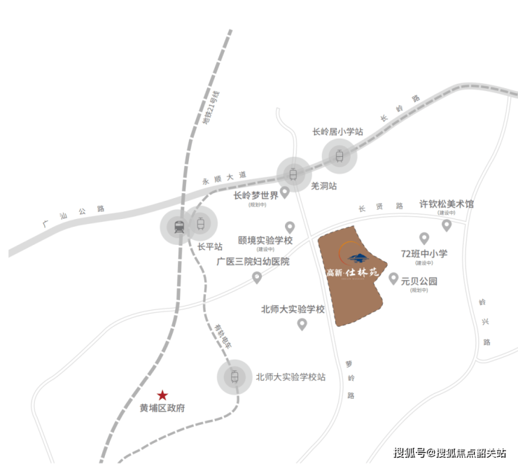 高新・仕林苑由深耕黄埔 40 载的国企高新区集团打造,精准落位于黄埔区长岭居生态板块 —— 被誉为 “黄埔区府后花园” 的核心区域,是连接黄埔区府与天河主城的双核枢纽。项目所在的长岭居,是黄埔区重点打造的生态宜居板块,既承接黄埔区府的成熟配套辐射,又依托生态资源吸引主城改善客群,同时享受粤港澳大湾区科创产业外溢红利。交通方面,项目直线距离约 800 米即达地铁 21 号线长平站,1 站直达黄埔区府(水西站)、2 站至萝岗万达广场(苏元站)、5 站抵达天河智慧城,40 分钟内可畅达珠江新城;步行约 400 米至有轨电车 1 号线羌洞站,1 站即可换乘 21 号线,轨道交通便捷高效。自驾出行依托广州绕城高速、香雪大道、广汕公路等 5 大城市主脉,20 分钟可达科学城核心,30 分钟链接天河、白云等主城区域。作为高新区集团继科城山庄后的又一品质力作,项目以 “双轨 + 主干道” 的交通网络,成为承接黄埔区府刚需与天河外溢改善需求的优选,国企背景更保障了项目品质与交付确定性。