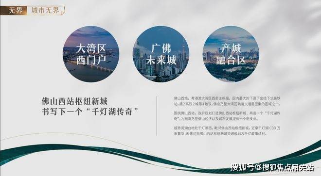 项目所在孝德湖板块,右接千灯湖CBD,左邻佛山西站枢纽新城,形成东接城市繁华、南向交通便利的独特区位优势。佛山西站枢纽新城规划面积达8.58平方公里,定位为大湾区西门户、广佛未来城以及产城融合核心区。区域内商业、文旅、酒店等多业态布局齐全,未来将建设成为全国文博新高地和文化新标杆,为南海乃至佛山经济发展提供强有力支撑。项目周边2高铁、2轻轨、4地铁的立体交通网络,让业主享受便捷通勤,佛山西站作为国内最大的下进下出式高铁站,进一步强化区域交通枢纽价值。