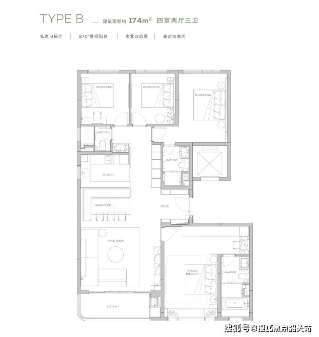 合生缦云广州的所有楼栋均为16-17层的纯板式小高层设计,专梯专户,保证了住户的私密性和舒适度。外立面采用轻质铝板幕墙搭配云翼曲线造型,不仅外观大气,而且具有良好的视觉效果。项目推出的户型面积从168㎡起步,主打四室两厅三卫的“四叶草”户型,每个房间都经过精心设计,确保空间利用的最大化。特别值得一提的是,所有户型均采用了M+科技系统,实现了绿色健康的宜居标准,为业主提供了更加智能舒适的生活体验。