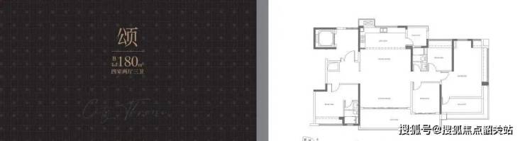 比如下面这个180㎡B 4房户型,看它的厨房就知道了,厨房的开间和客厅等同,妥妥的豪宅产品才有的设计。