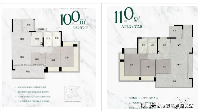 核心亮点:经典三房,功能齐全。主卧配备270°转角飘窗,拓展视野与空间感。客厅连接景观阳台,次卧及阳台尺度相较于前期产品全面升级。高实用率设计,满足首改或品质刚需家庭。