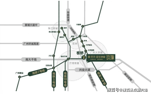 场景化描述:早晨8点,您从家门出发,步行约700米(实测数据)到达地铁7号线板桥站,无需换乘,2站(约6分钟)直达万博CBD,5站(约15分钟)抵达琶洲互联网集聚区。如果驾车,出小区即上南大干线,30分钟内可畅达珠江新城、广州南站、国际金融城。