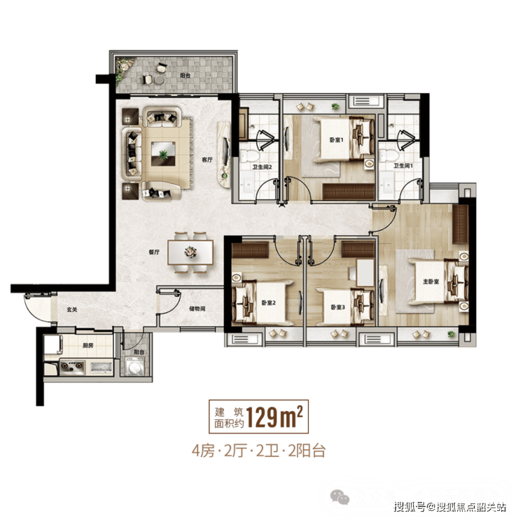 建筑面积:涵盖建面约93-95平、110平、129平四种户型