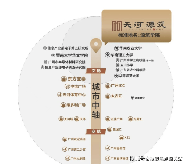 世纪金源·天河源筑坐落于广州天河区东莞庄,号称天河北后花园,紧邻环五山创新策源区,距离珠江新城仅约4.5公里。这个位置不仅让项目从众多新盘中脱颖而出,而且凭借其“商脉、文脉”资源的独特组合,成为高净值人群的理想居住选择。项目周边汇聚了广州最密集的200+米超高层建筑和总部集聚区,产业浓度极高。同时,区域内拥有广州6所双一流大学中的4所,包括华南理工大学、华南农业大学、暨南大学和华南师范大学,形成了浓厚的学术氛围。