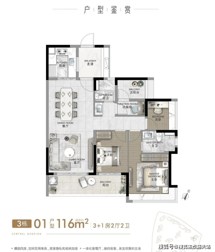 (二)建面116㎡四房两卫:空间实用,适配二胎家庭/三代同堂