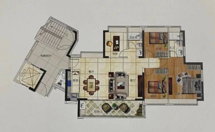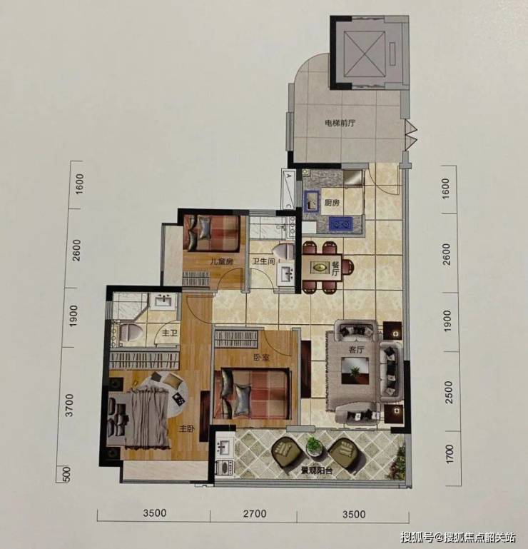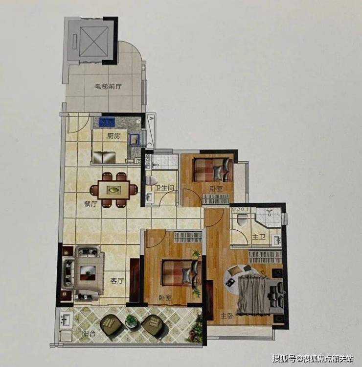 独户电梯前厅,客厅和主次卧同向。